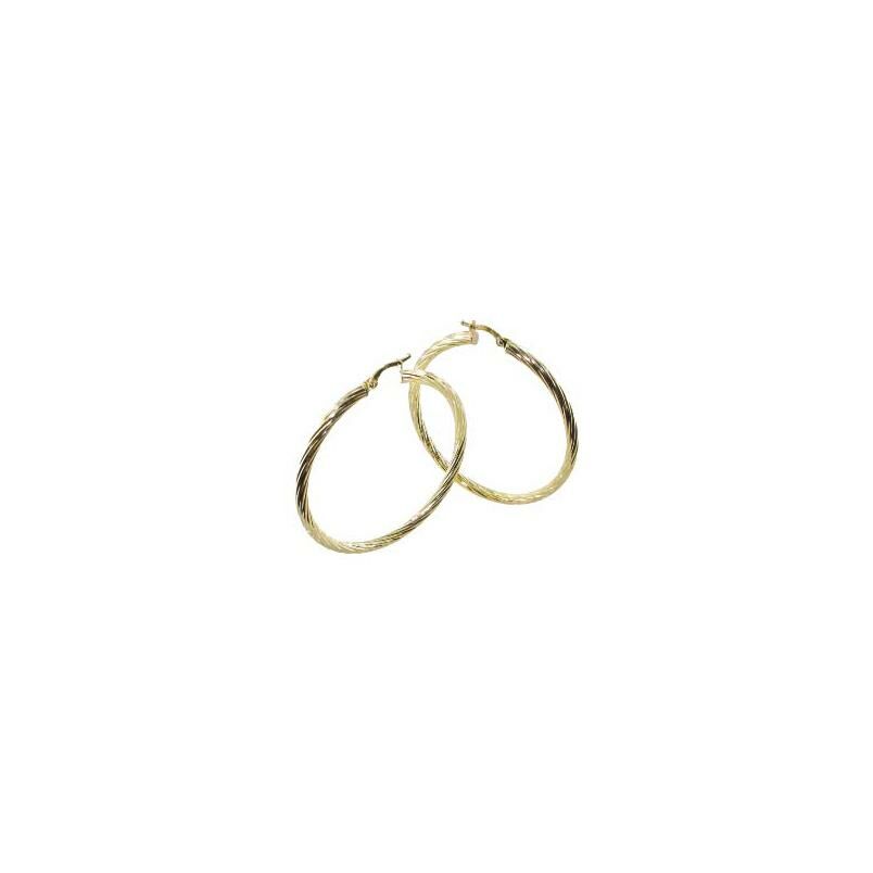 Boucles d'oreilles créoles torsadées ADLC en or jaune Description détaillée